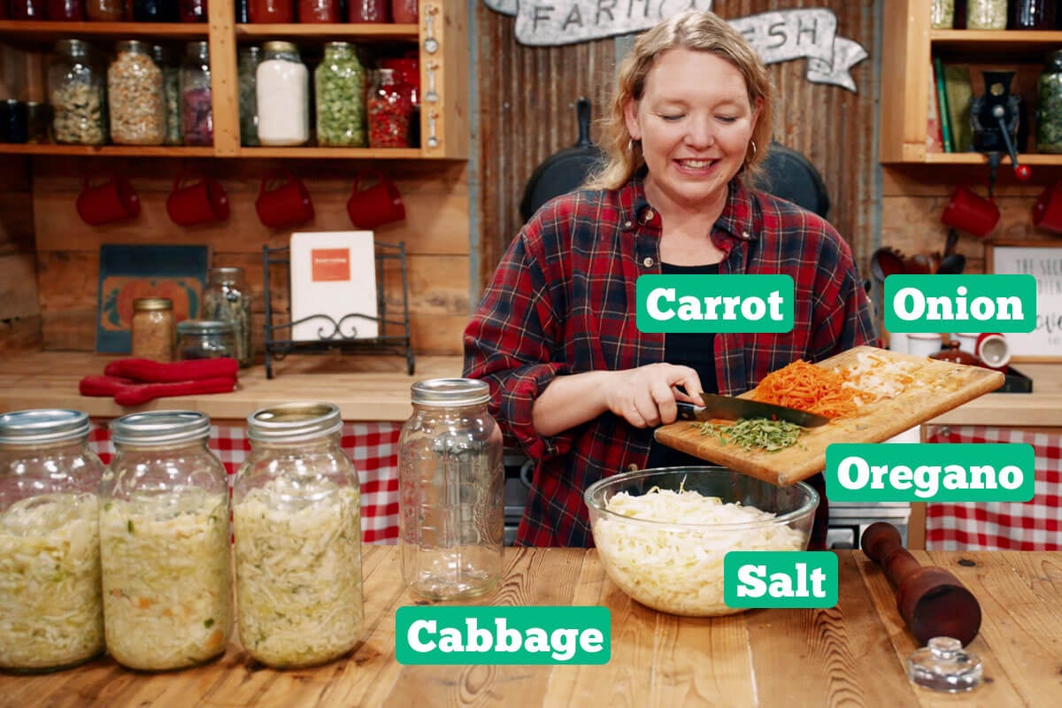 - Place shredded cabbage, onion, carrot, and oregano in a large bowl and sprinkle with the salt.
